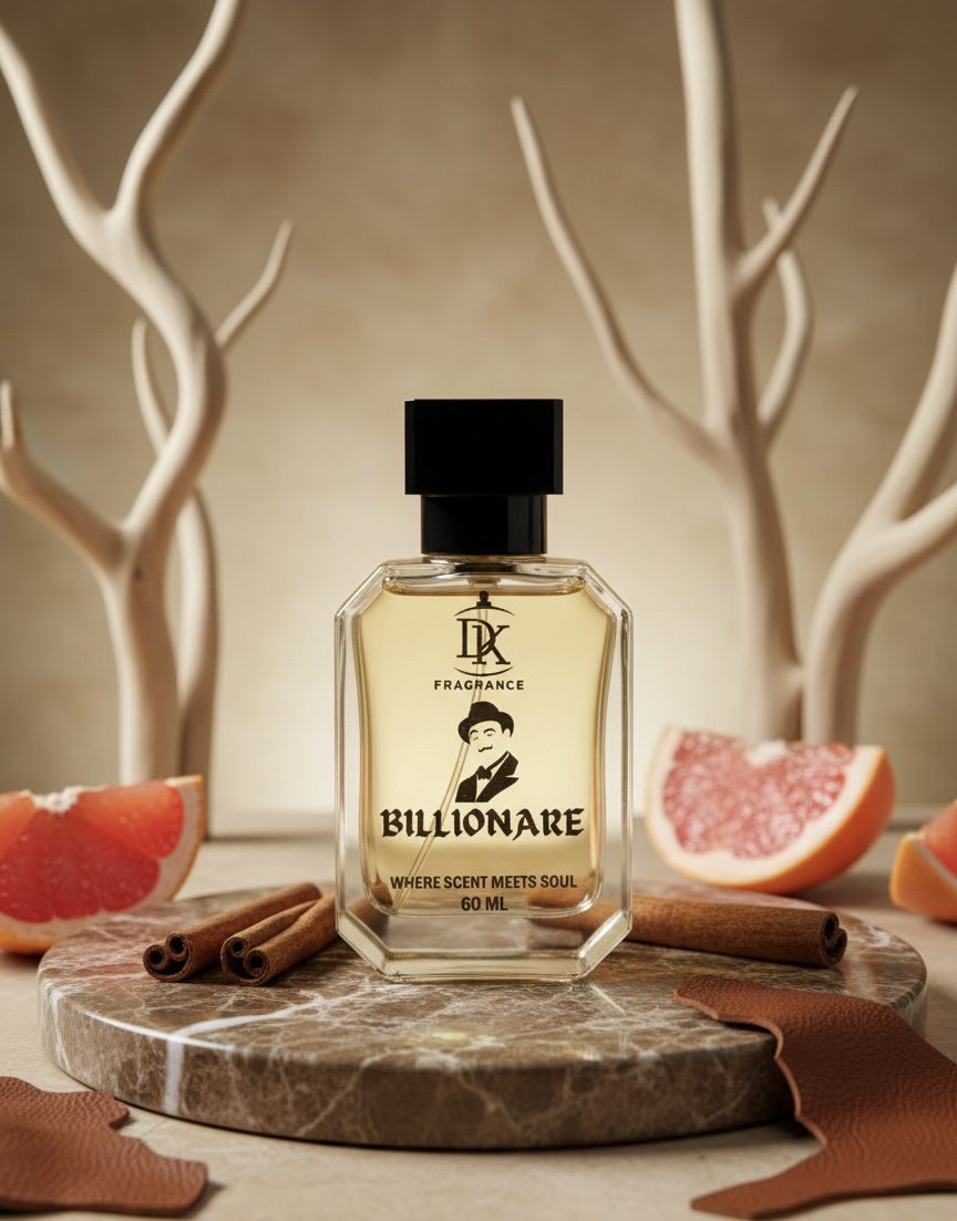 Billionaire is an aromatic fougere fragrance for men. The top notes are nutmeg, lavender, cedar, chamomile, orange, hawthorn, lemon and bergamot. The middle notes are sandalwood, violet leaf, carnation, jasmine, honeysuckle, and lily of the valley. The base notes are vetiver, leather, musk, patchouli, amber and tonka bean. This is an iconic scent that signifies passion.